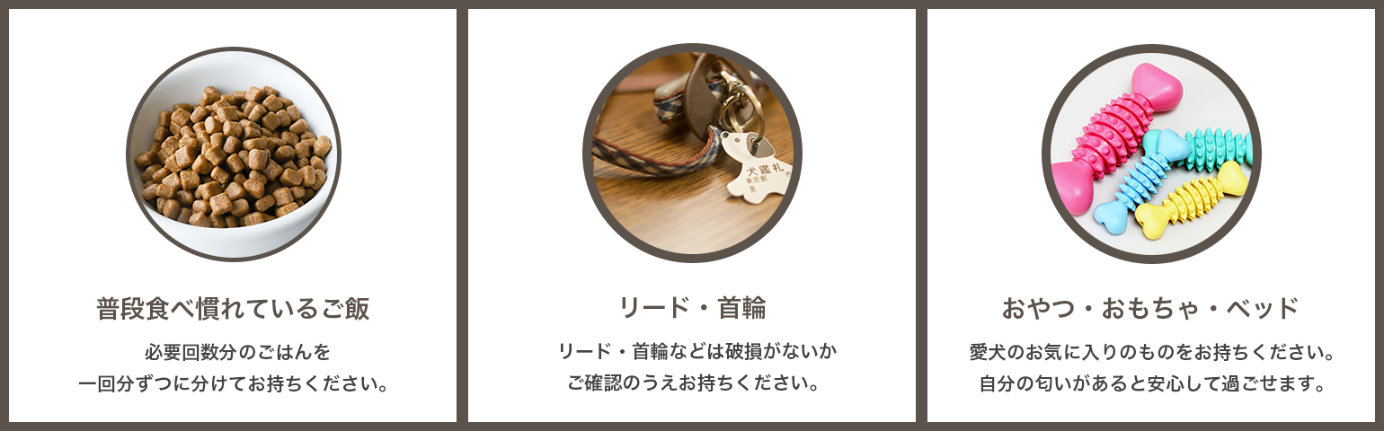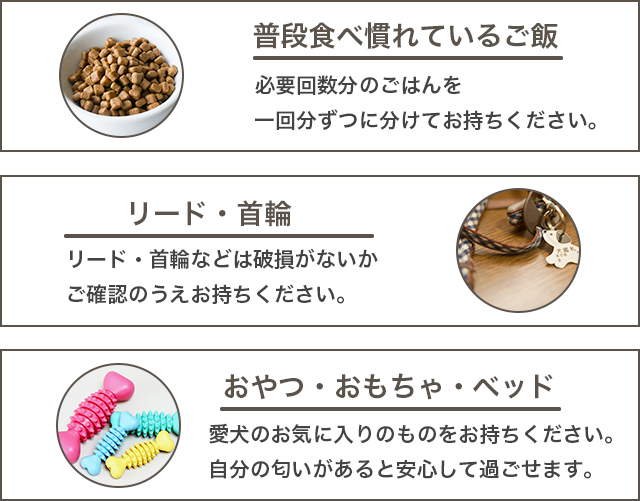 〇 普段使用しているブランケットやお気に入りのぬいぐるみなどがありましたらお持ちください。ワンちゃんがより安心いたします。